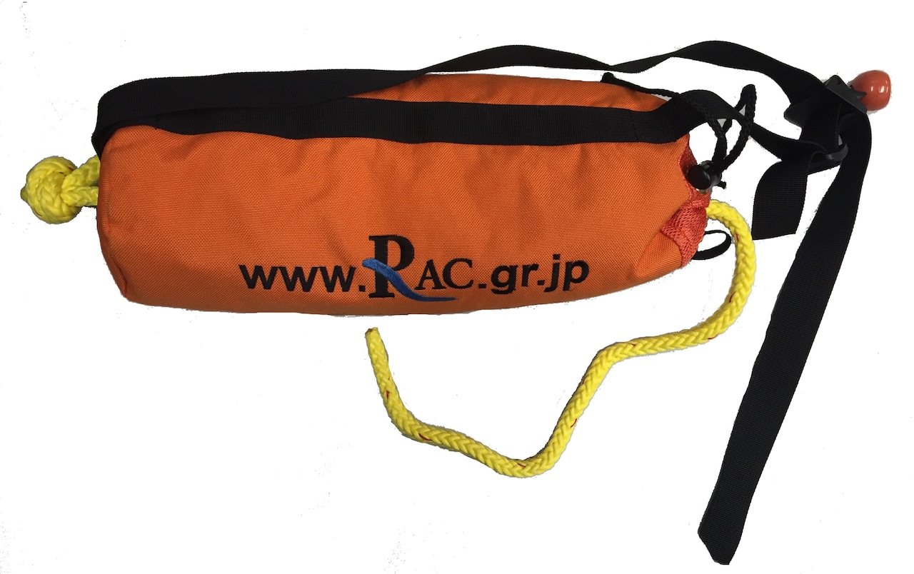 RACではこの程、川遊びや川での水生生物観察会時等の川の体験活動用のスローロープを関係各社のご協力により開発しました。